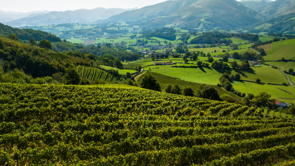 畑は山々と谷が織りなす壮大な景観の中にあり、海と山の影響を受けた温暖湿潤な気候が特徴です。南向きの斜面は日照に恵まれ、ピレネー山脈が海風や北風を和らげてくれます。